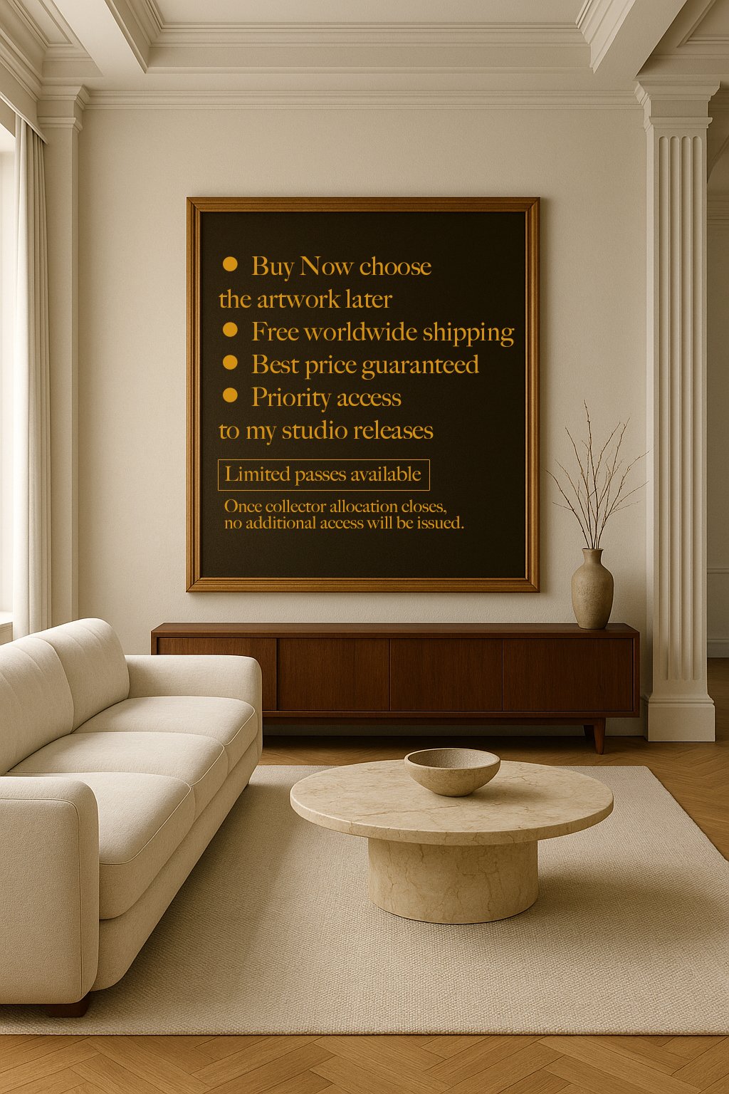 A premium acquisition pass that allows you to purchase any artwork from my studio — even pieces not yet listed in the store.