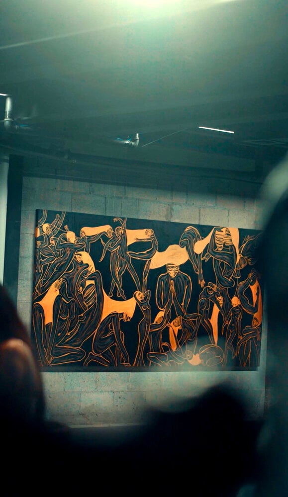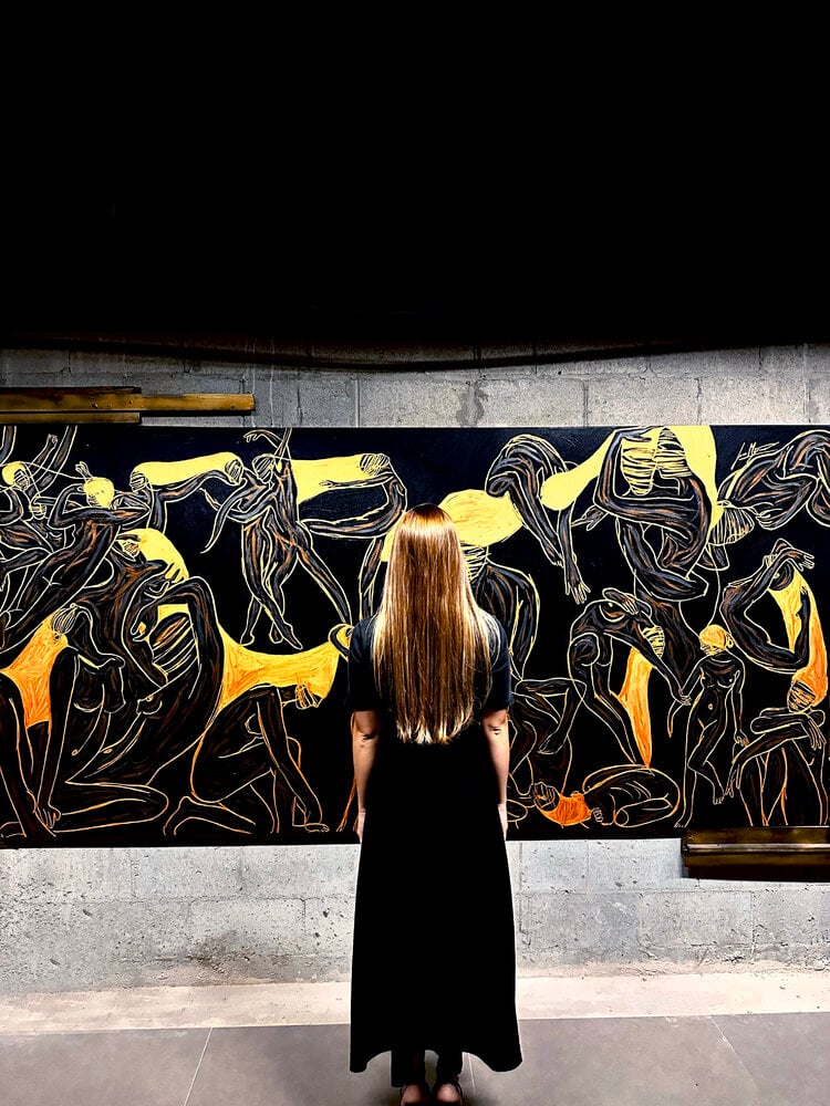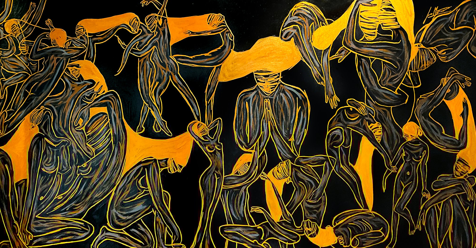 A monumental 290×130 cm panel where bodies move like currents of pure force. In Energy XXIII, Juca Máximo composes a choreography of existence: each figure bends, rises, collapses, surrenders or resists — yet all remain connected by a single pulse. This work expands the Energy Series into an immersive installation, as it can be displayed with sculptural wood frames, transforming painting into spatial experience. Both intimate and epic, it explores the tension between vulnerability and power, individuality and unity, silence and explosion. A true statement piece, created for museum-scale collections and curatorial attention.