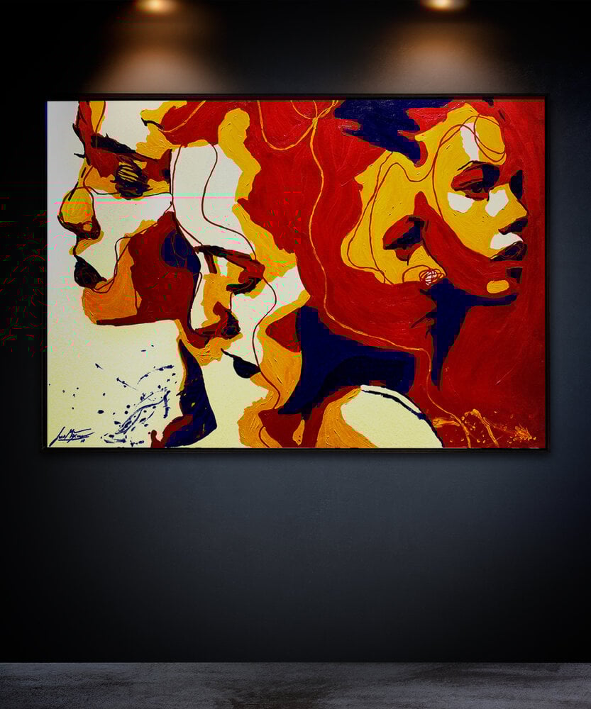 Vivid acrylics and gestural pencil marks collide in a bold composition that recalls the intensity of Fauvism while exploring the quiet spaces between identity and transformation. Layered female figures embody becoming — not as a fixed destination, but as a continuous, intimate unfolding. Each brushstroke reads like a sentence left mid-thought, inviting the viewer not just to witness, but to emotionally write themselves into the narrative.