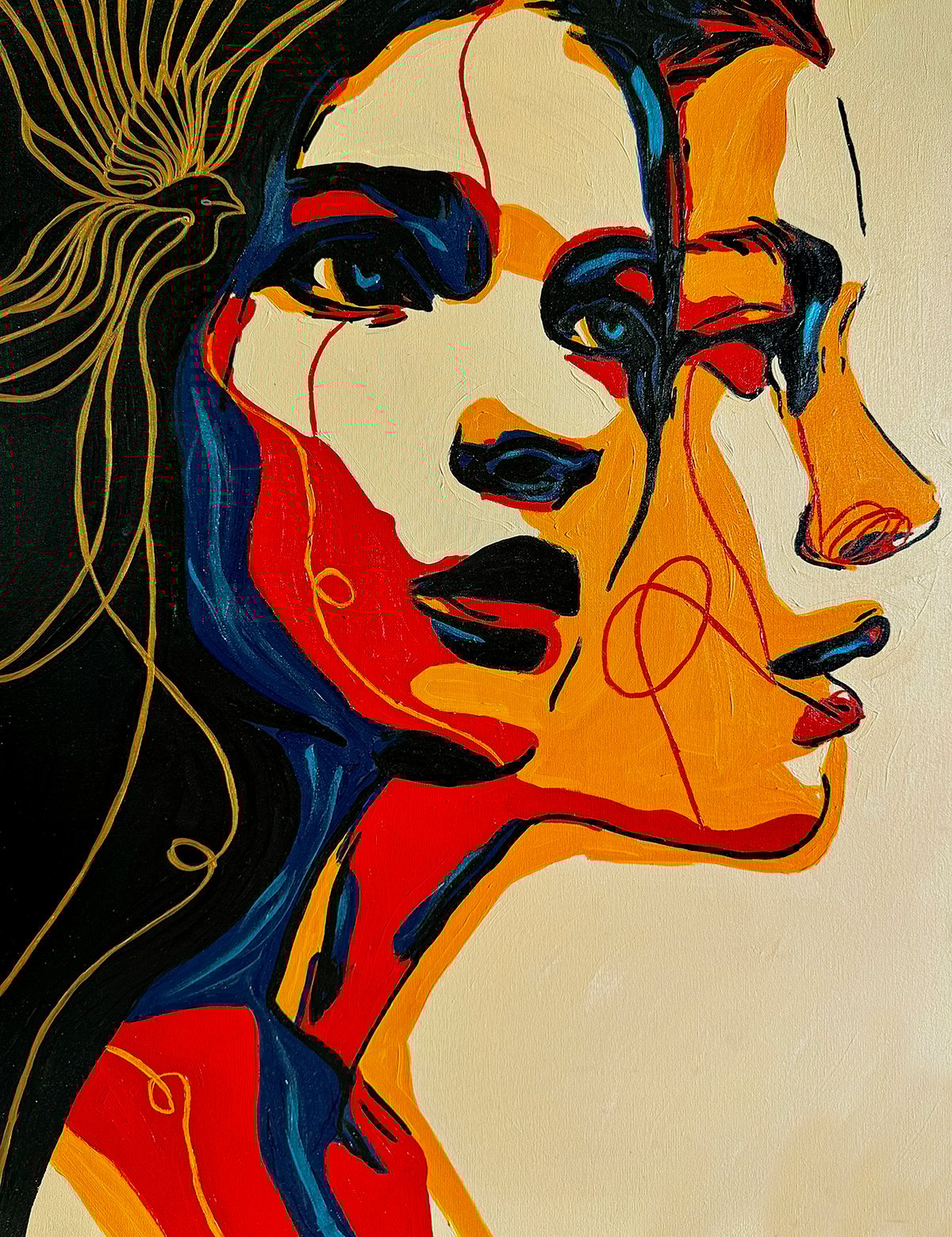 Only three originals exist worldwide. Each one is hand-created using vivid acrylics, bold pencil gestures, and layered inks that embody the emotional complexity of becoming — especially when shaped by another soul.